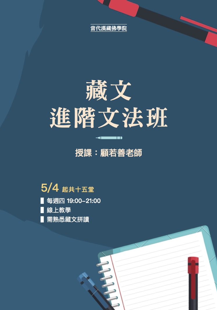 1. 上課資格:需具備藏文短句直讀能力。具備藏文基本文法概念,可辨認常用格助詞。