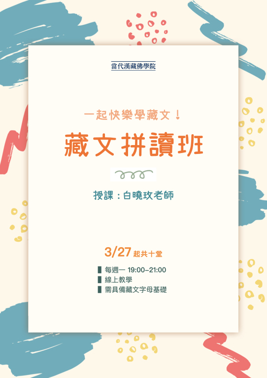 1. 上課資格:需具備藏文字母基礎。