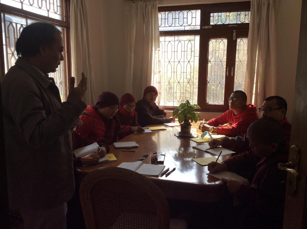 一六年底,藥房舉辦了召集會議,各個寺院都很積極投入,報名人數不少。龍樹慈善藥房參照各寺院給出的時間表,第一期培訓於二零一七年一月八日開課,共有五座寺院的八位僧眾參加。